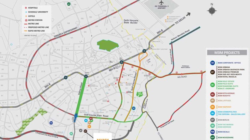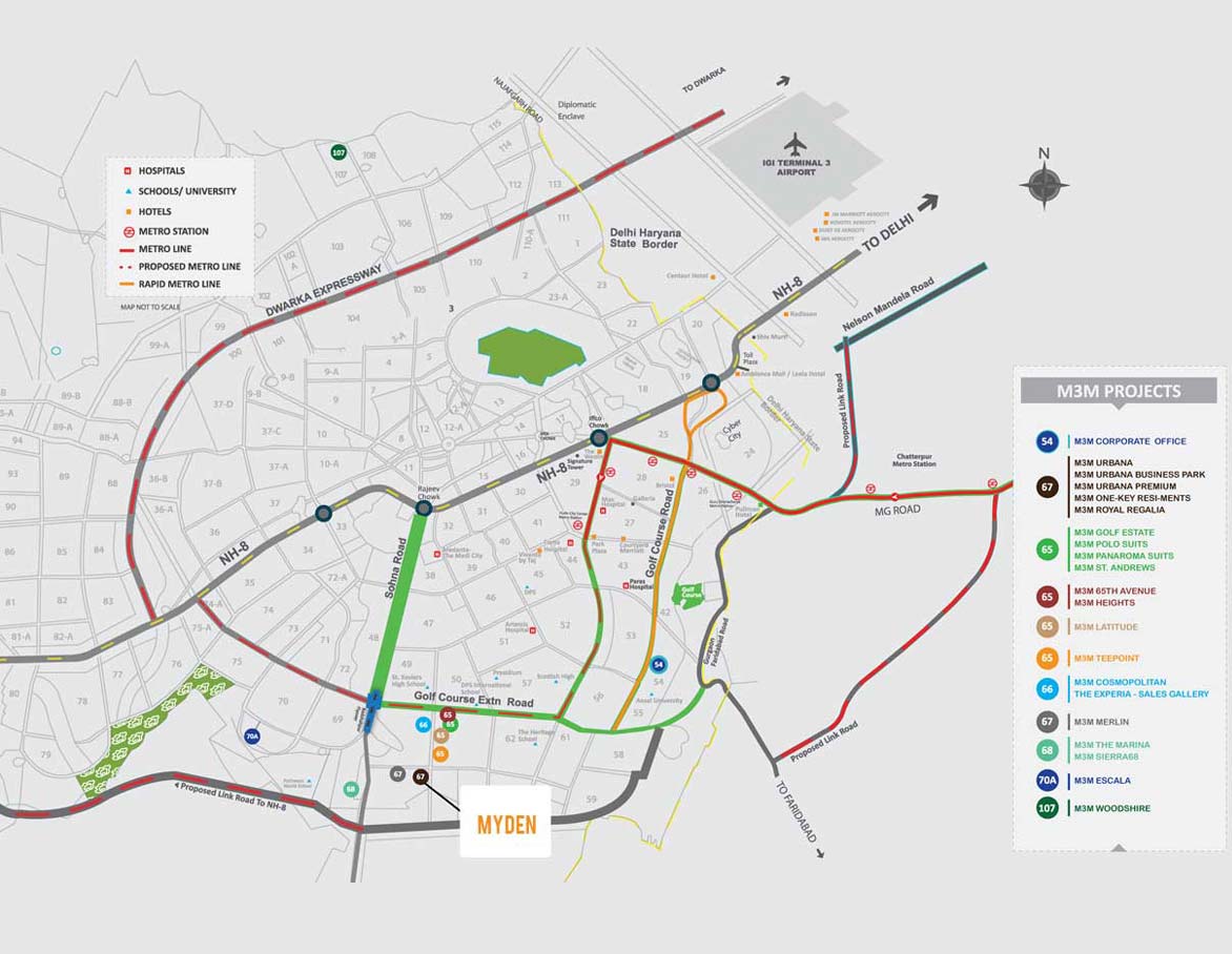 The Project prominently located off Golf Course Extension Road. Located on the Metro corridor, offering fast, convenient and comfortable connectivity to Delhi, easy accessibility to NH8 as well as to South Delhi via Gurgaon Faridabad expressway. Close to major Hospitals like Medicity, Artemis etc. & Schools like St. Xaviers High School, DPS International, Heritage School etc.